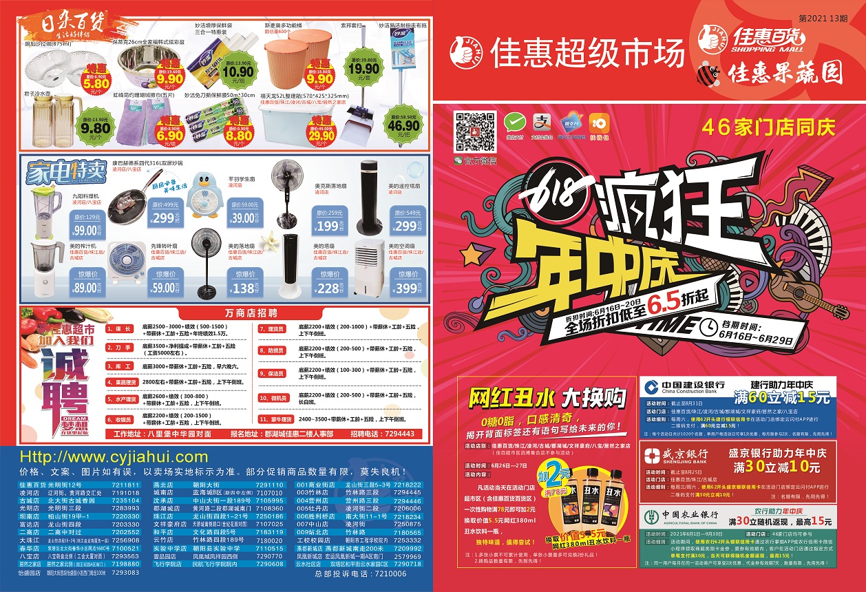 ◎朝陽佳惠超市有限公司 ◎電話:0421-7210006/7206776 ◎地址:朝陽市雙塔區(qū)光明街2段12號 ◎